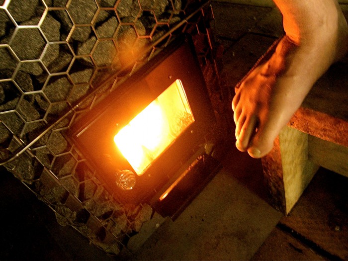 When the stones are hot and the fire is out, the carbon monoxide is cast out by tossing water to the stove. Now the smoke sauna is ready for guests.